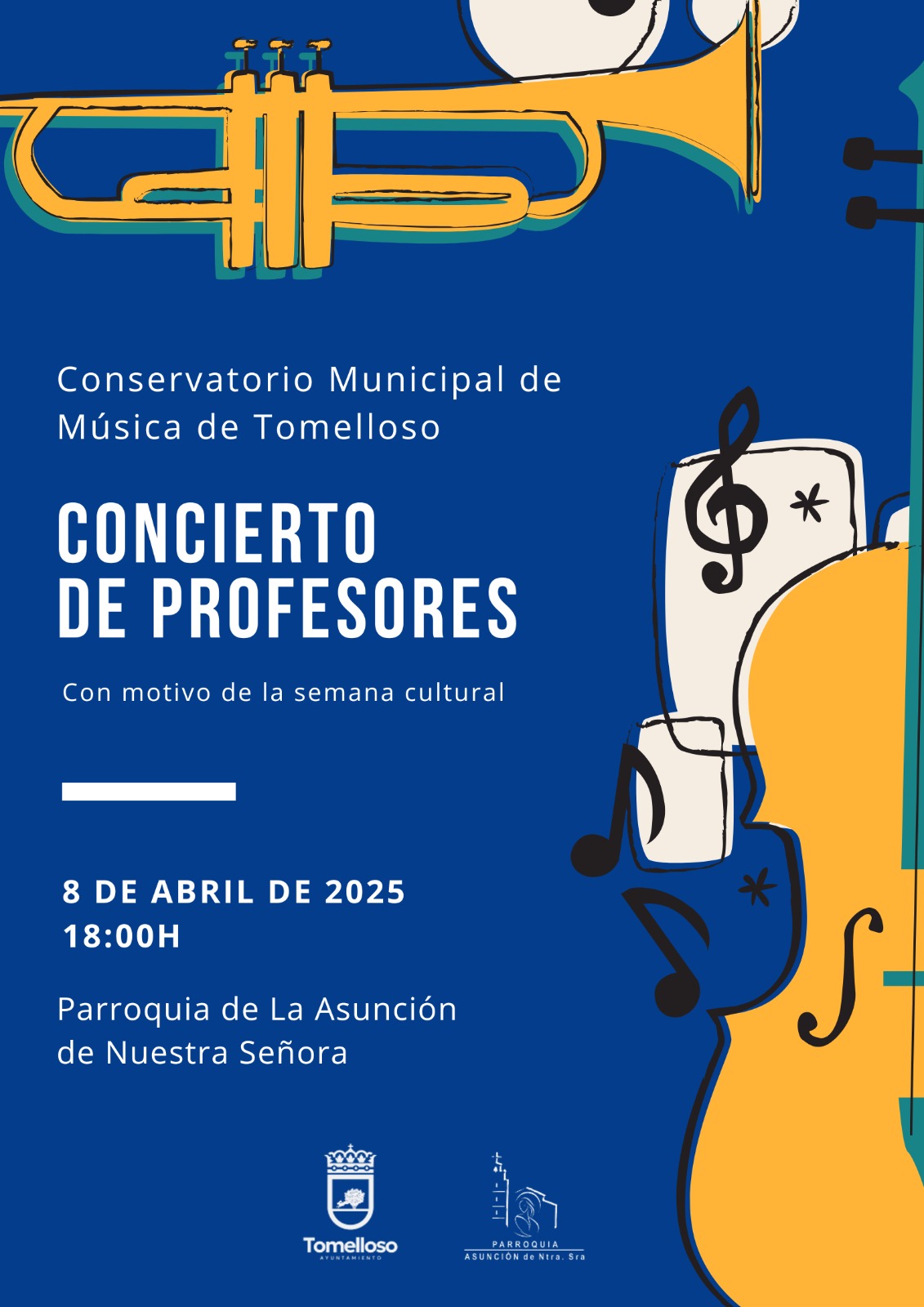 Con motivo de la Semana Cultural, el próximo 8 de abril a las 18:00 h. se celebrará un concierto en la «Parroquia de la Asunción de Ntra. «Señora , ofrecido por los profesores del Conservatorio Municipal de Música de Tomelloso.
