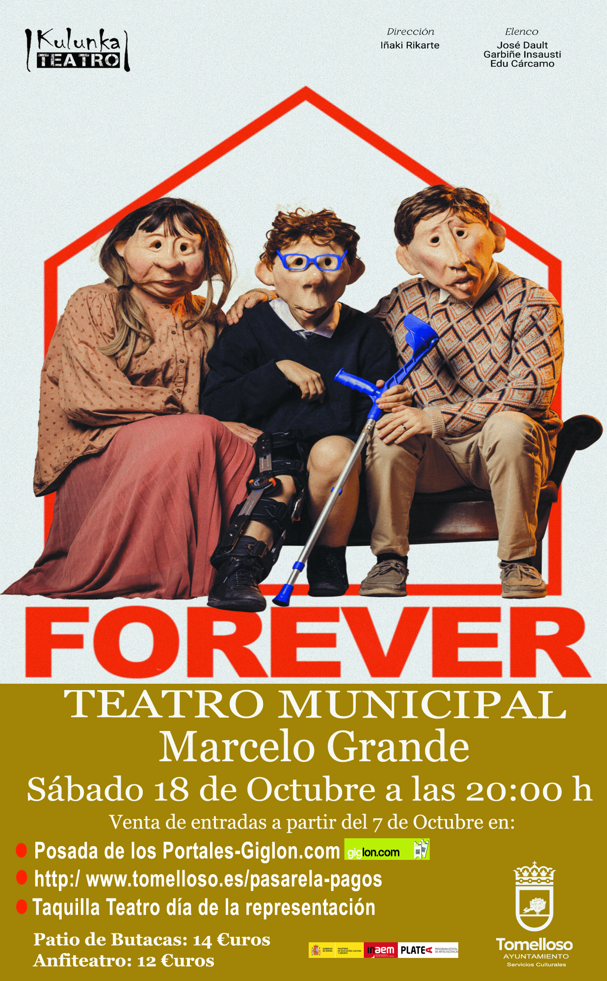 OBRA DE TEATRO «FOREVER» OBRA DE TEATRO «FOREVER» + Añadir Google Calendar Exportación + iCal / Outlook Etiquetas: Teatro Fecha Oct 18 2025 Finalizdo! Hora 20:00 Coste 12.00€ Localización TEATRO MUNICIPAL 'MARCELO GRANDE' Categoría Cultura Eventos Teatro Turismo Organizador Ayuntamiento de Tomelloso Teléfono 926528800 Web http://www.tomelloso.es/ Compartir este evento