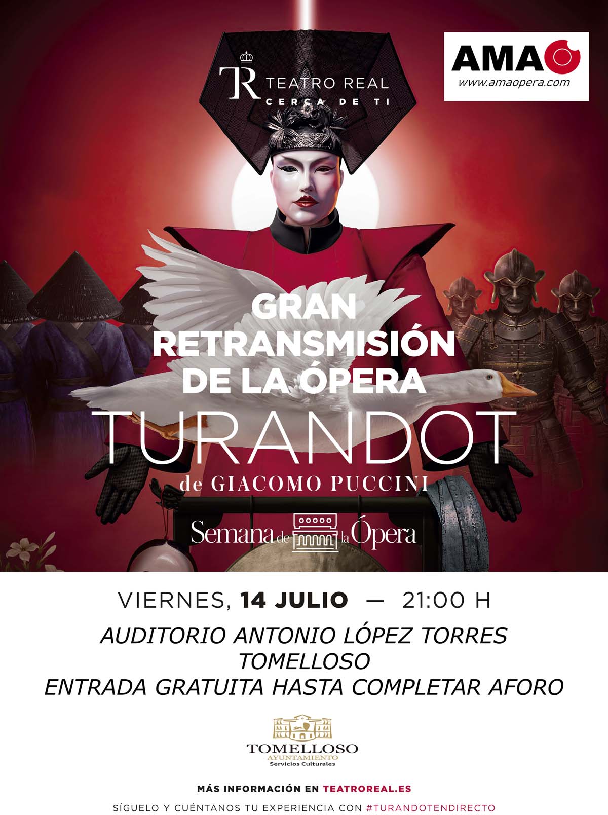 Retransmisión de la ópera «Turandot», desde el Palacio Real de Madrid, este viernes, día 14, a las 21:00 horas, en el Auditorio Municipal López Torres.