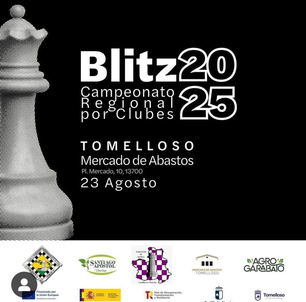 El sábado 23 de agosto desde las 09:00 h. el Mercado de Abastos será la sede del Blitz 2025- Campeonato Regional por Clubes.
