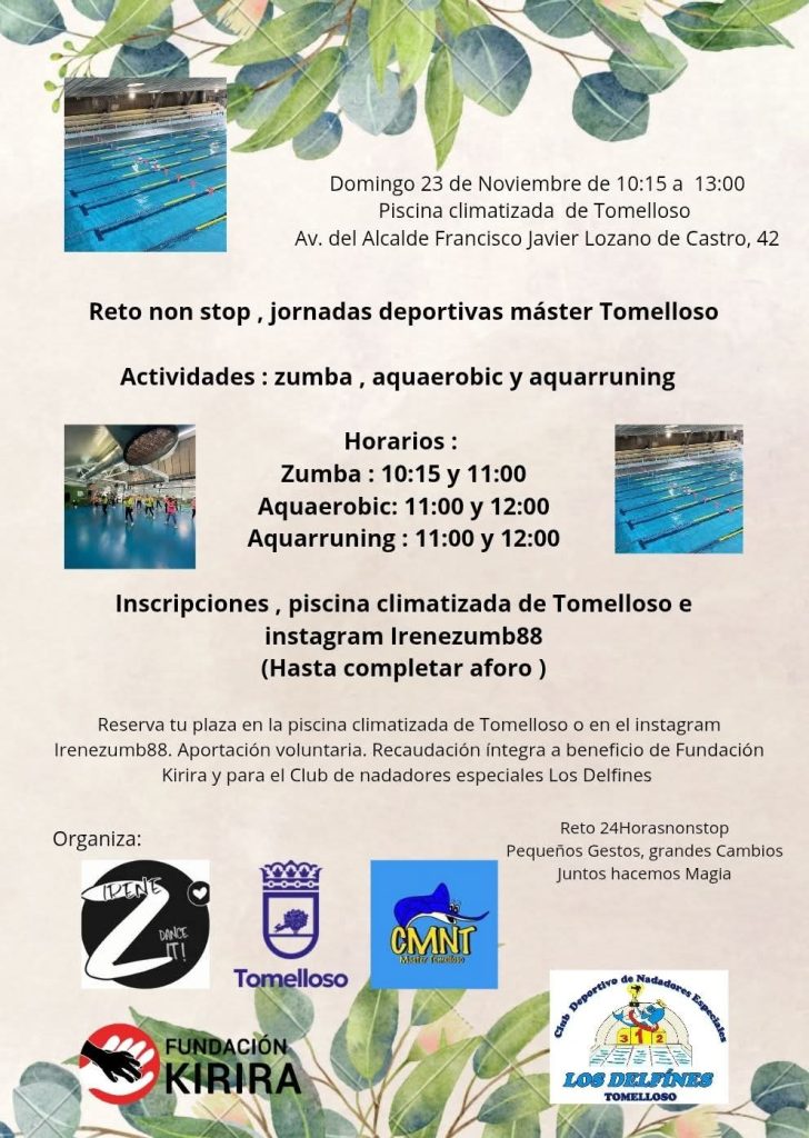 RETO NON STOP Jornadas deportivas máster Tomelloso. Actividades: Zumba, aquaerobic y aquarruning.