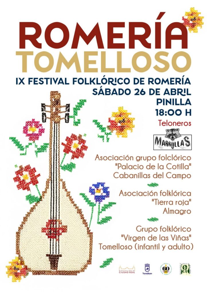 XI FESTIVAL FOLKLÓRICO DE ROMERÍA Asociación grupo folklórico » Palacio de la Cotilla» de Cabanillas del Campo. Asociación Folklórica » Tierra Roja» de Almagro. Grupo folklórico » Virgen de las Viñas» de Tomelloso,( infantil y adulto).