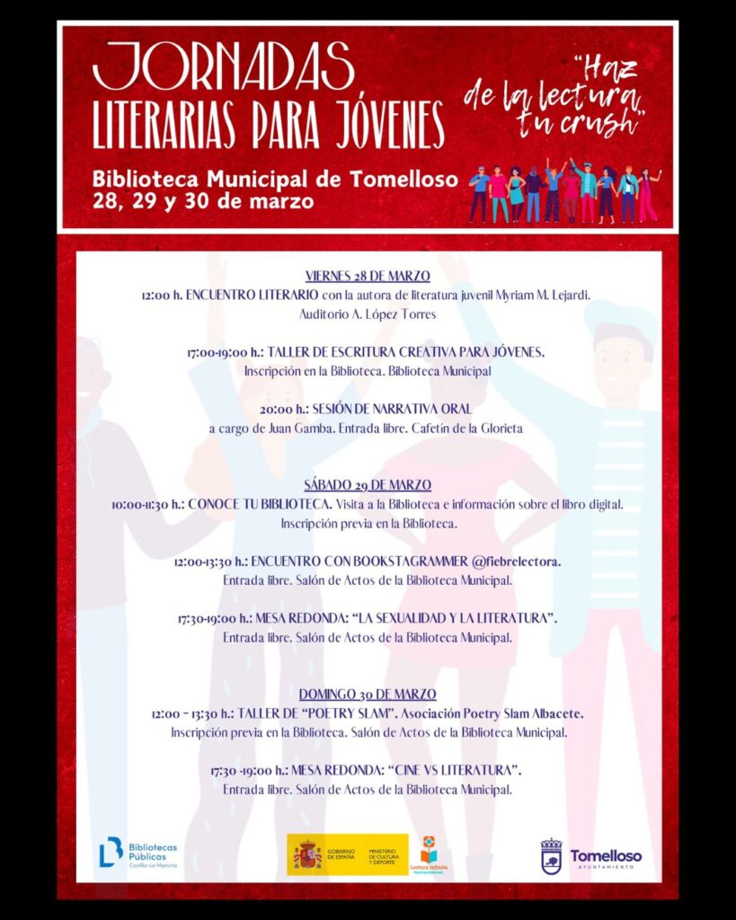 JORNADAS LITERARIAS PARA JÓVENES «Haz de la lectura tu crush» Mas información en https://www.bibliotecaspublicas.es/tomelloso y en el número de teléfono 926 528801 extensión 1380